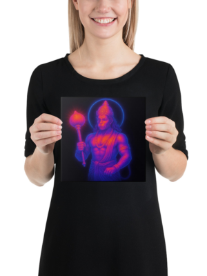 Bring courage and devotion into your home with this powerful Hanuman canvas wall art. The vivid colours and radiant glow reflect divine strength, loyalty, and protection, making it a perfect statement piece for any home or prayer space. Whether displayed in a meditation room, living area, or given as a spiritual gift, this artwork embodies…